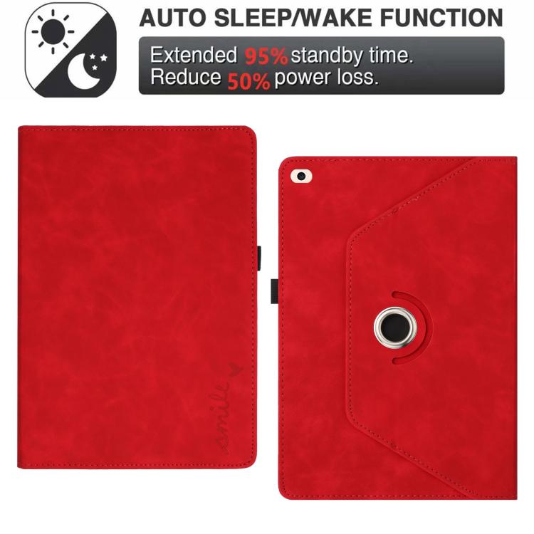 For iPad Air 2 / 1 / 9.7 2018 / 2017 Smile Embossed Rotation Holder Leather Smart Tablet Case(Red)