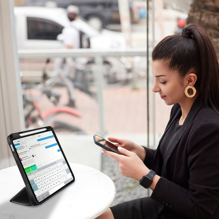 For iPad Air 5 / 4 3-fold TPU Smart Leather Tablet Case with Pen Slot(Black)