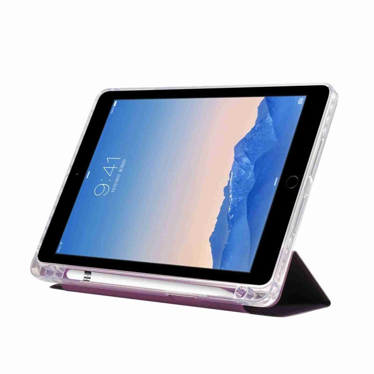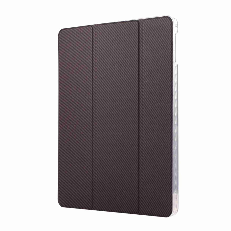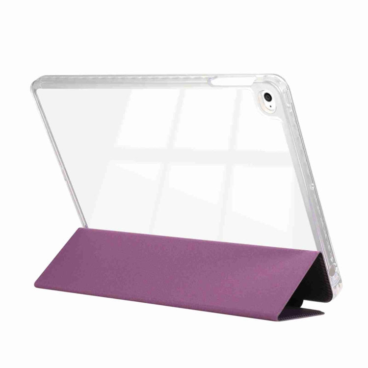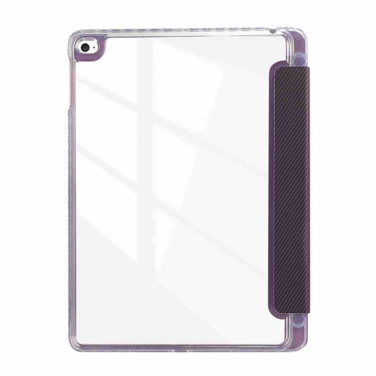 For iPad Air / Air 2 / 9.7 2017 / 2018 Carbon Fiber Clear Acrylic 3-Fold Leather Tablet Case(Purple)