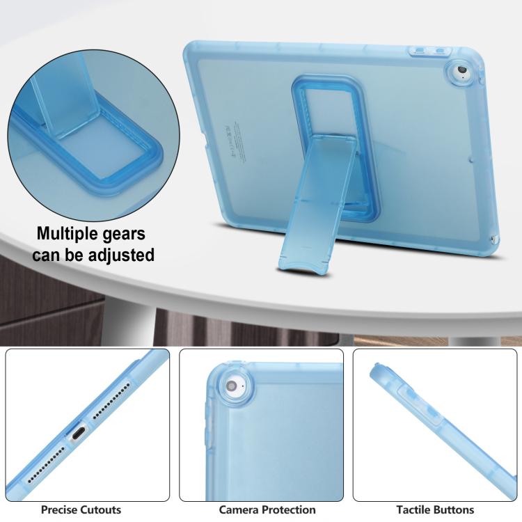 For iPad Air / Air 2 / 9.7 2017 / 2018 Semi-Transparent TPU Shockproof Tablet Case with Holder(Blue)