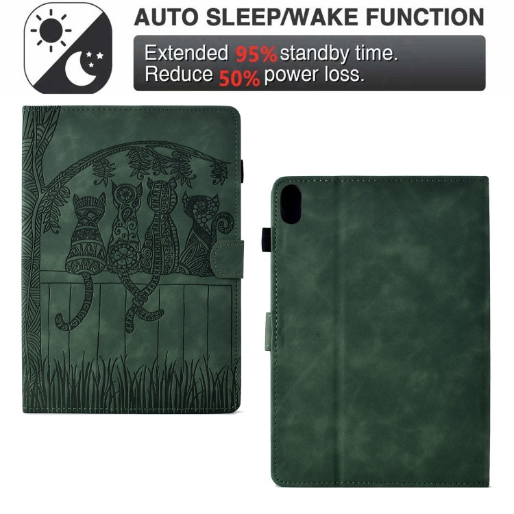 For iPad mini 6 / mini 2024 Cats Embossed Leather Smart Tablet Case(Green)