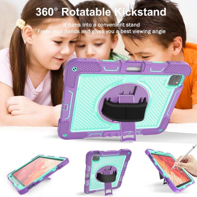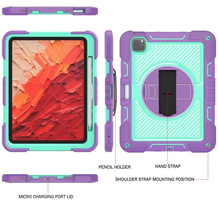 For iPad Pro 11 2024 360 Degree Rotation PC Contrast Silicone Tablet Case(Purple + Mint Green)
