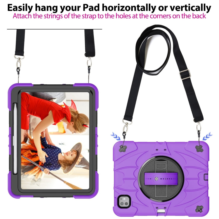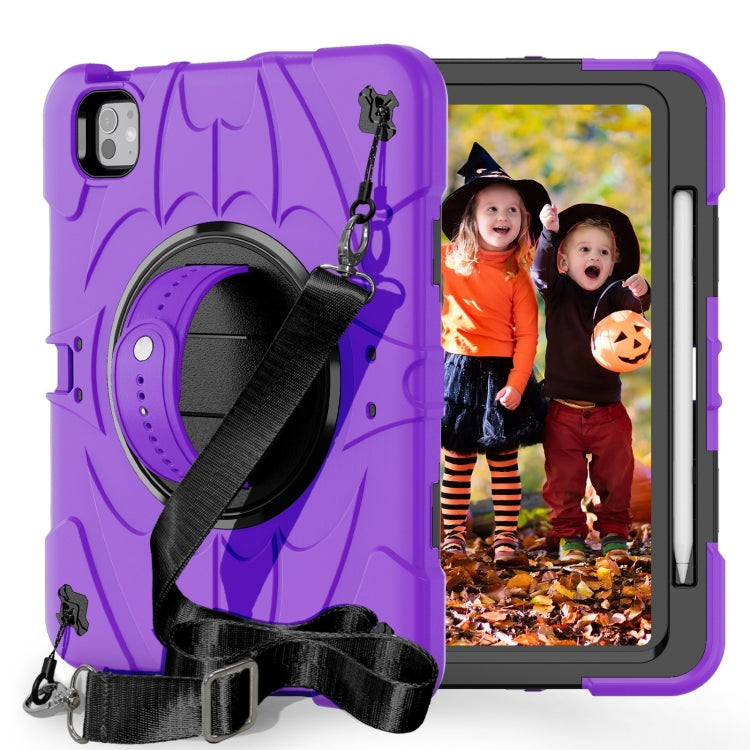 For iPad Pro 11 2024 Bat Hand Grip Turntable Stand Tablet Case(Purple Black)