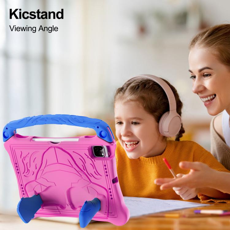 For iPad Pro 11 2024 Boxing Series Kickstand EVA Shockproof Tablet Case with Shoulder Strap(Rose Red Blue)