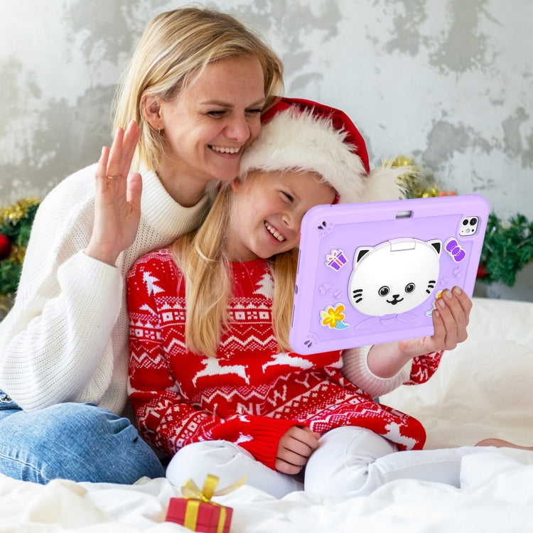 For iPad Pro 11 2024 Cat Holder Silicone Hybrid PC Tablet Case with Strap(Purple)