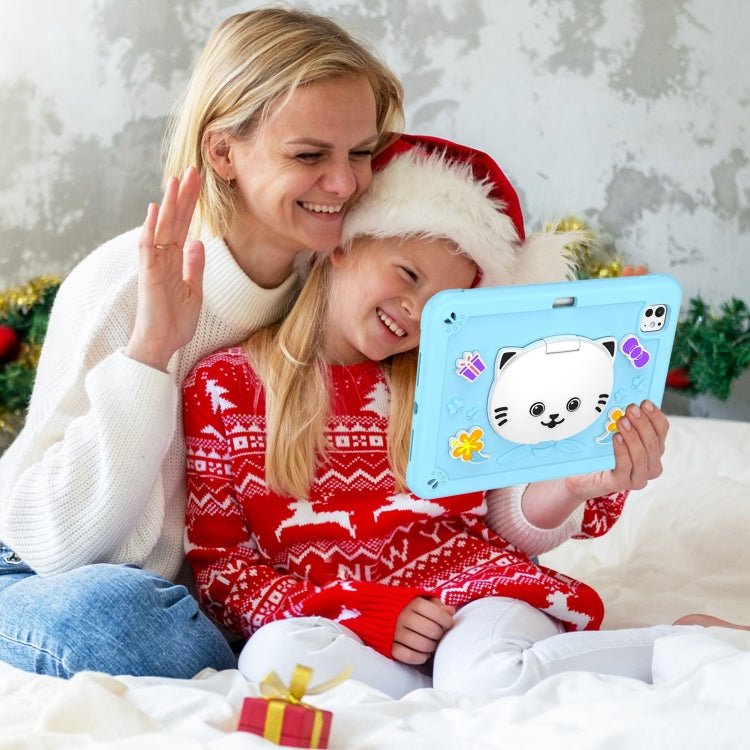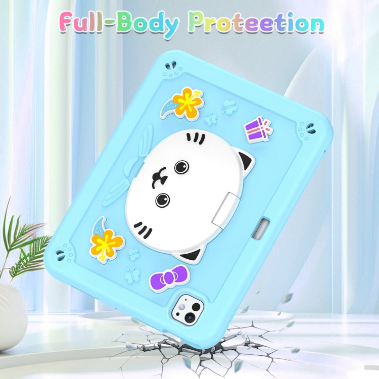 For iPad Pro 11 2024 Cat Holder Silicone Hybrid PC Tablet Case with Strap(Sky Blue)