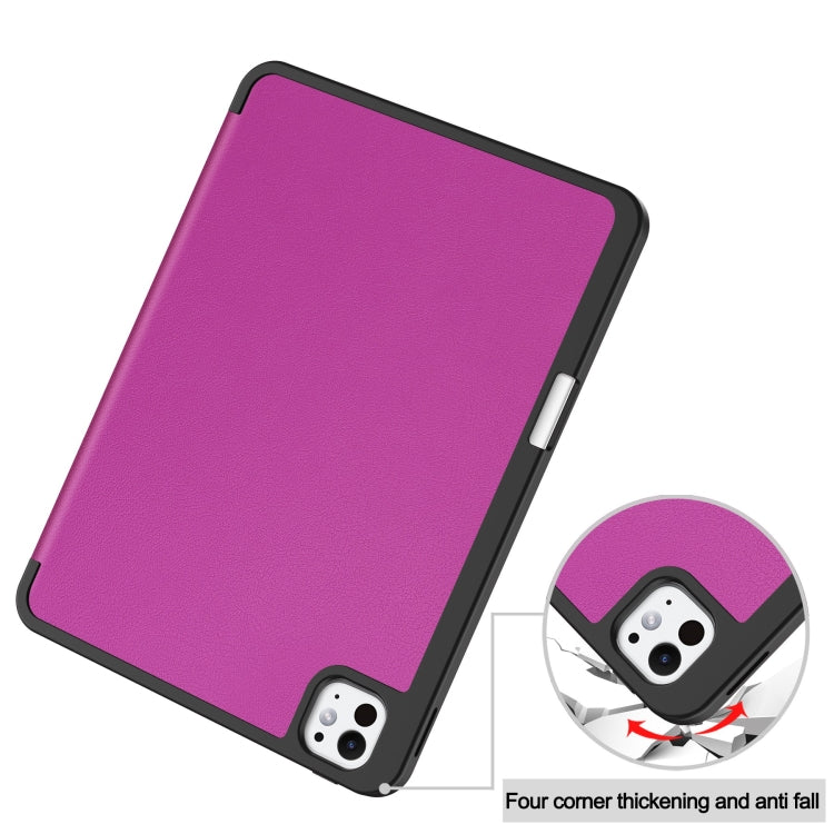 For iPad Pro 11 2024 Custer TPU Pure Color 3-Fold Holder Smart Leather Tablet Case with Pen Tray(Purple)
