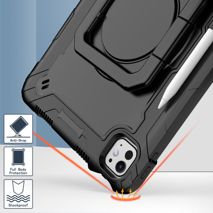 For iPad Pro 11 2024 Handle Grip Holder Silicone Hybrid PC Tablet Case with Strap(Black)