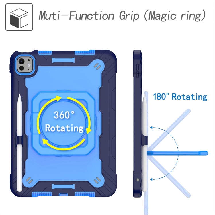 For iPad Pro 11 2024 Handle Grip Holder Silicone Hybrid PC Tablet Case with Strap(Navy Blue Blue)