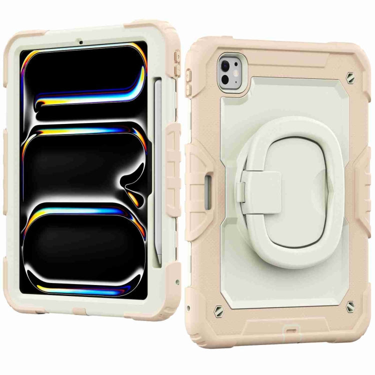 For iPad Pro 11 2024 Handle Silicone Hydric PC Tablet Case with Shoulder Strap(Beige Rose Gold)