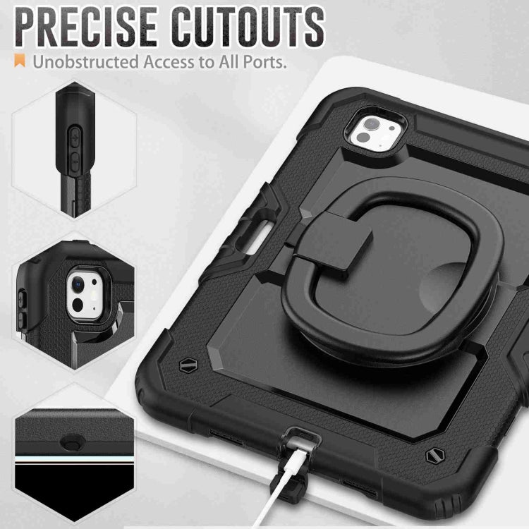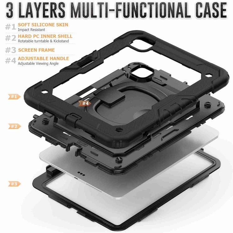 For iPad Pro 11 2024 Handle Silicone Hydric PC Tablet Case with Shoulder Strap(Black)