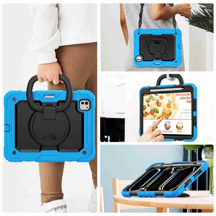 For iPad Pro 11 2024 Handle Silicone Hydric PC Tablet Case with Shoulder Strap(Light Blue)