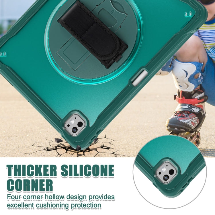 For iPad Pro 11 2024 Heavy Duty Hybrid Tablet Case with Hand Grip & Strap(Dark Green)