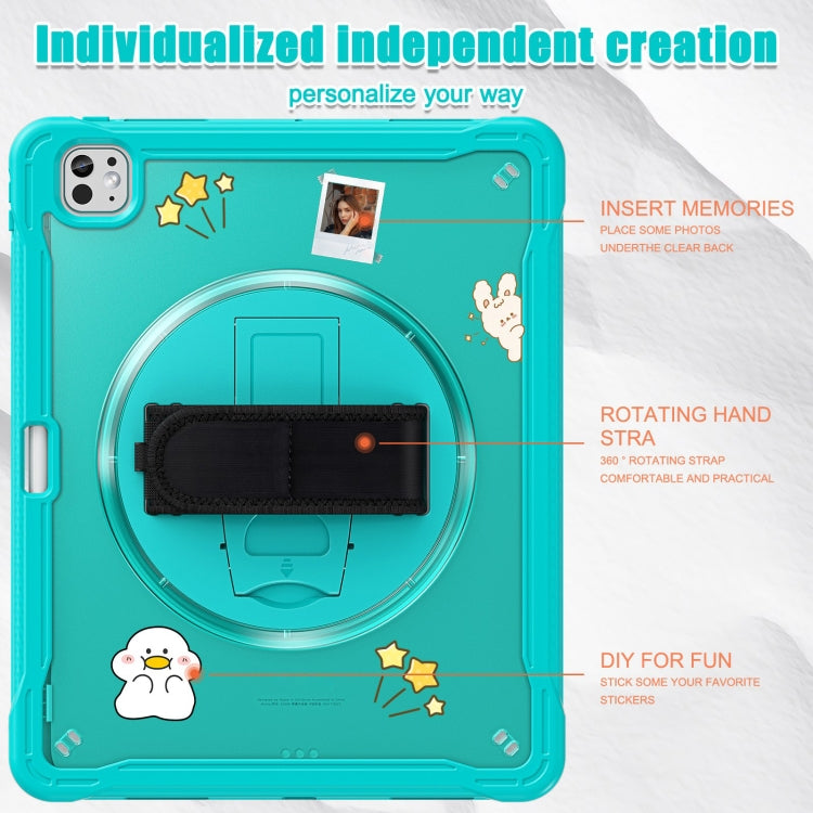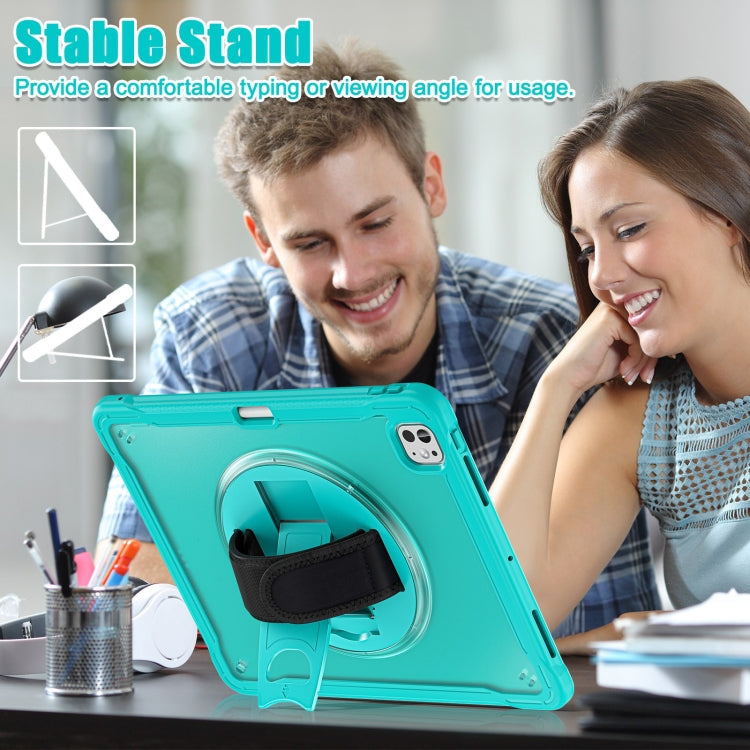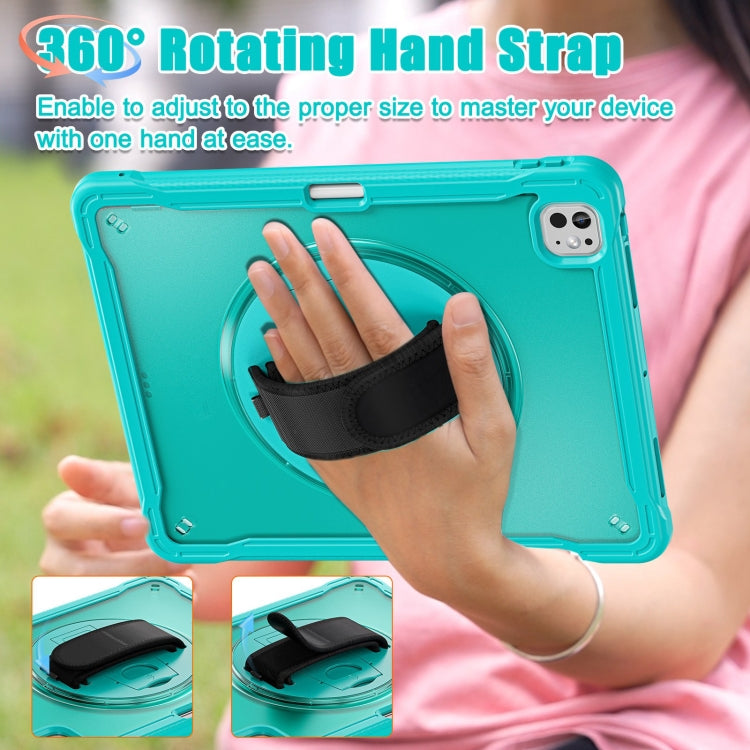 For iPad Pro 11 2024 Heavy Duty Hybrid Tablet Case with Hand Grip & Strap(Light Blue)