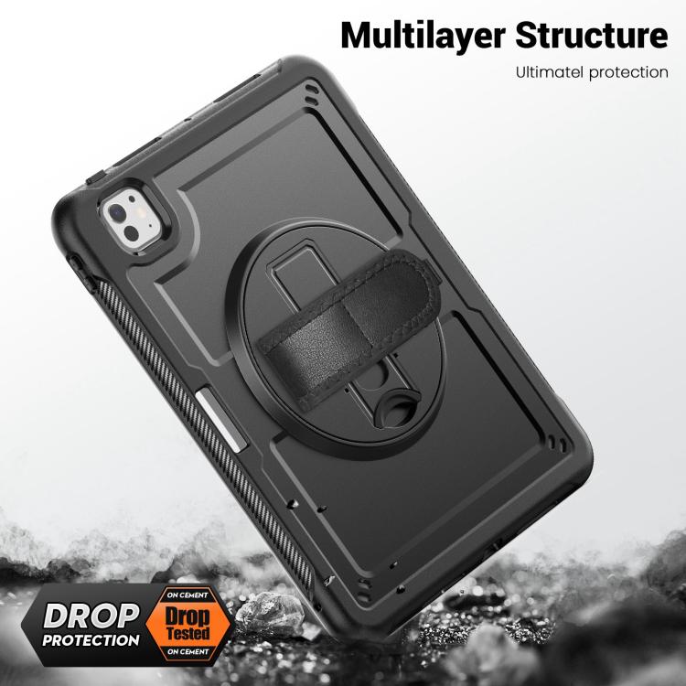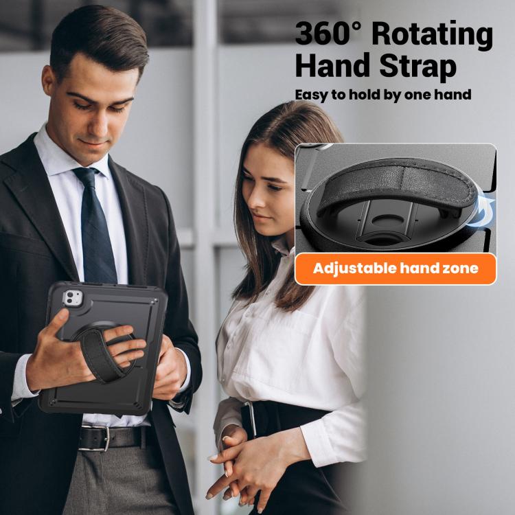 For iPad Pro 11 2024 Honeycomb Hand Grip Turntable Stand Tablet Case(Black)