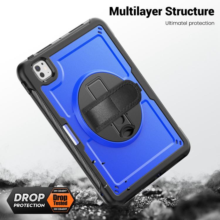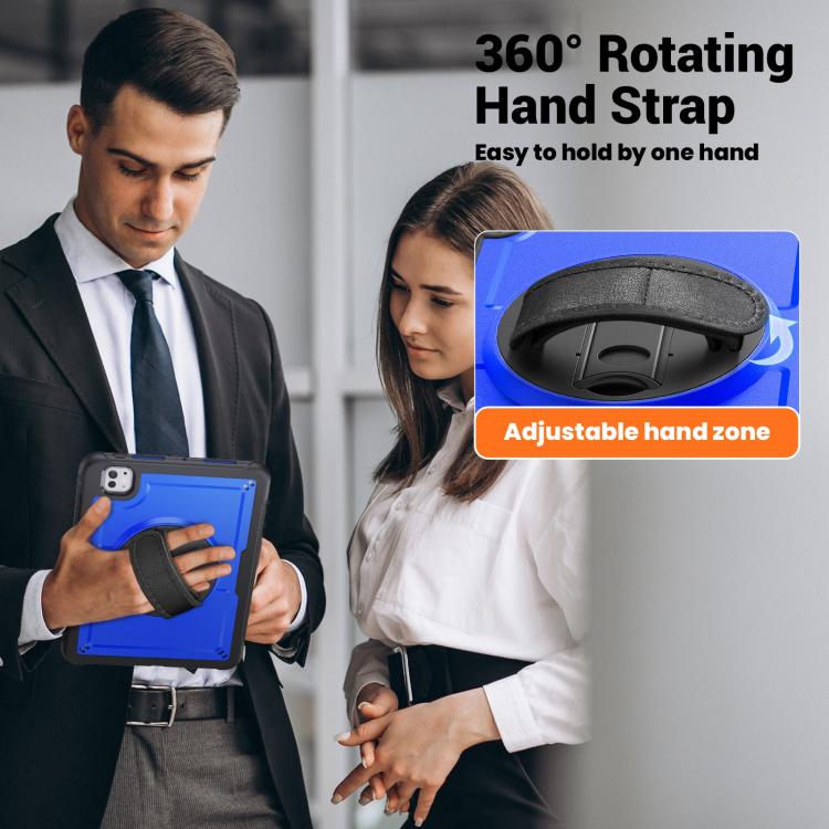 For iPad Pro 11 2024 Honeycomb Hand Grip Turntable Stand Tablet Case(Dark Blue)