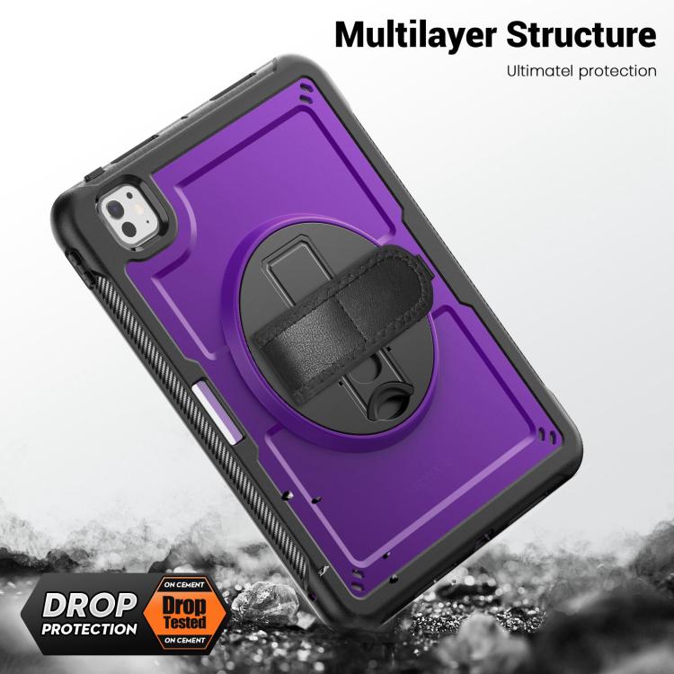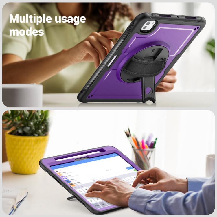 For iPad Pro 11 2024 Honeycomb Hand Grip Turntable Stand Tablet Case(Purple)