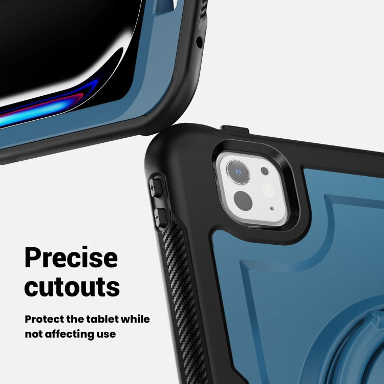 For iPad Pro 11 2024 Honeycomb Hybrid Tablet Case with Handle Holder & Strap(Navy Blue)