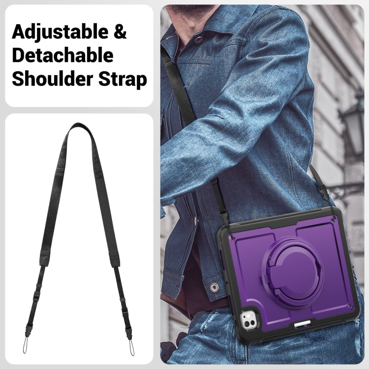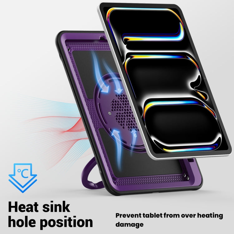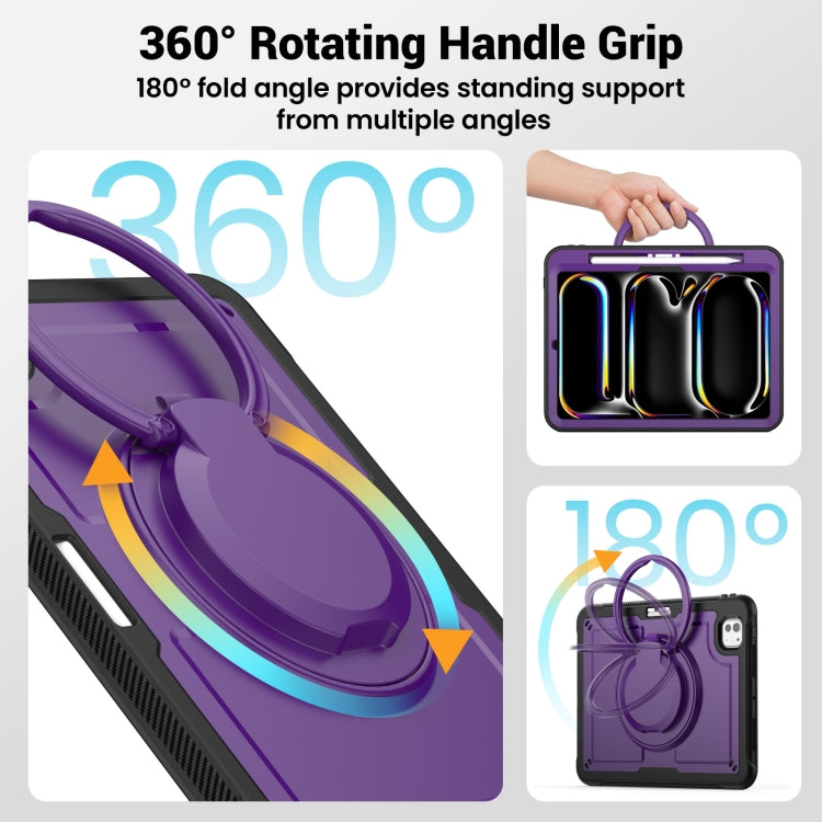 For iPad Pro 11 2024 Honeycomb Hybrid Tablet Case with Handle Holder & Strap(Purple)