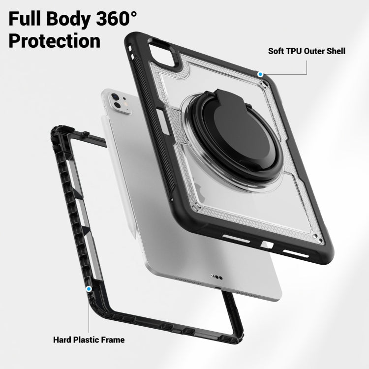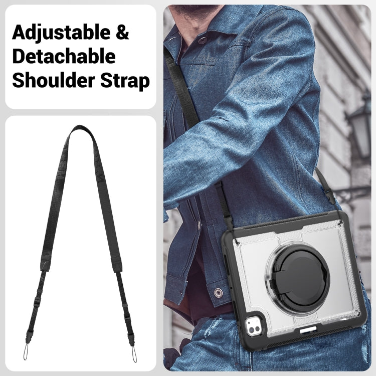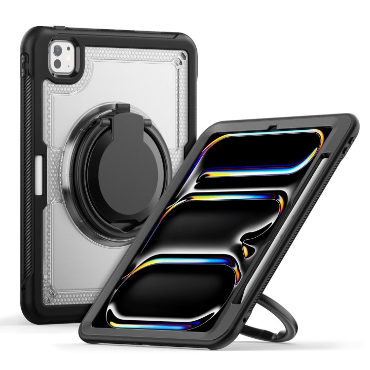 For iPad Pro 11 2024 Honeycomb Hybrid Tablet Case with Handle Holder & Strap(Transparent)