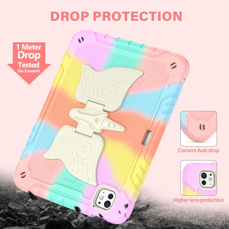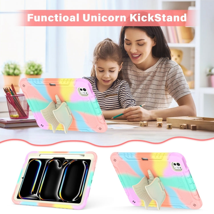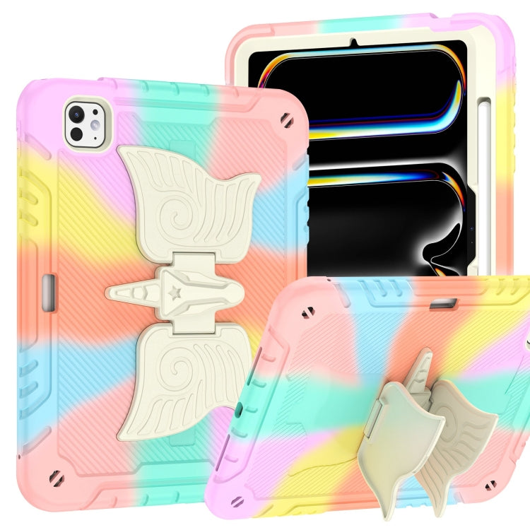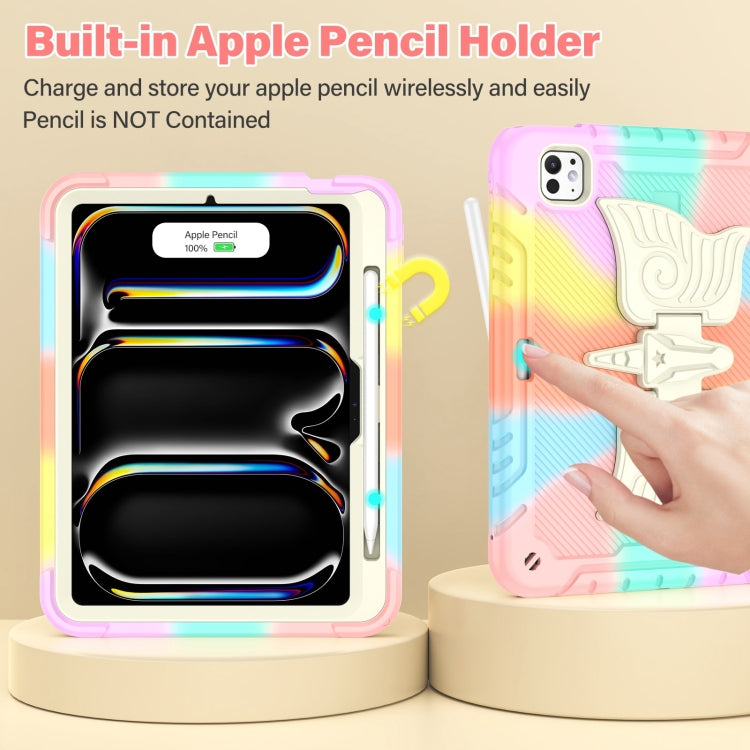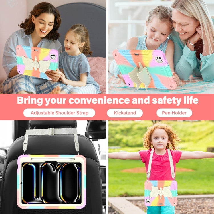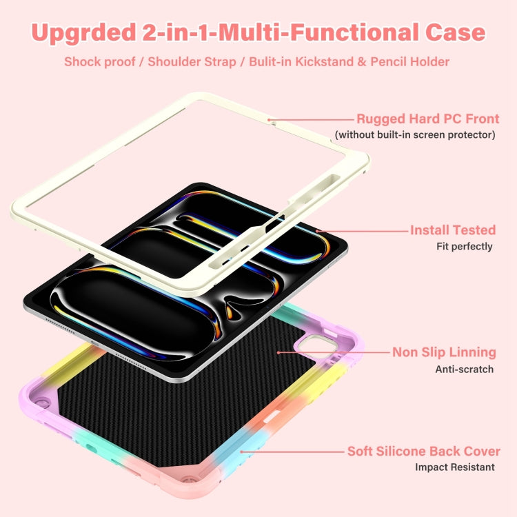 For iPad Pro 11 2024 Kickstand PC Hybrid Silicone Tablet Case with Strap(Colorful Rose Gold)