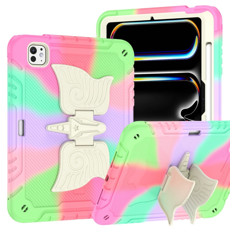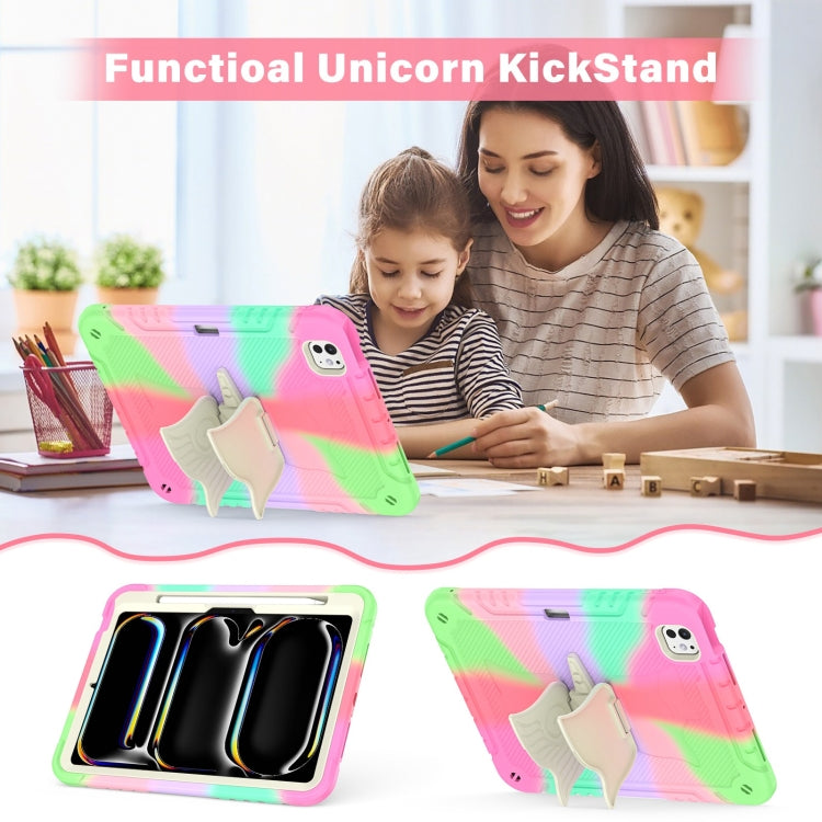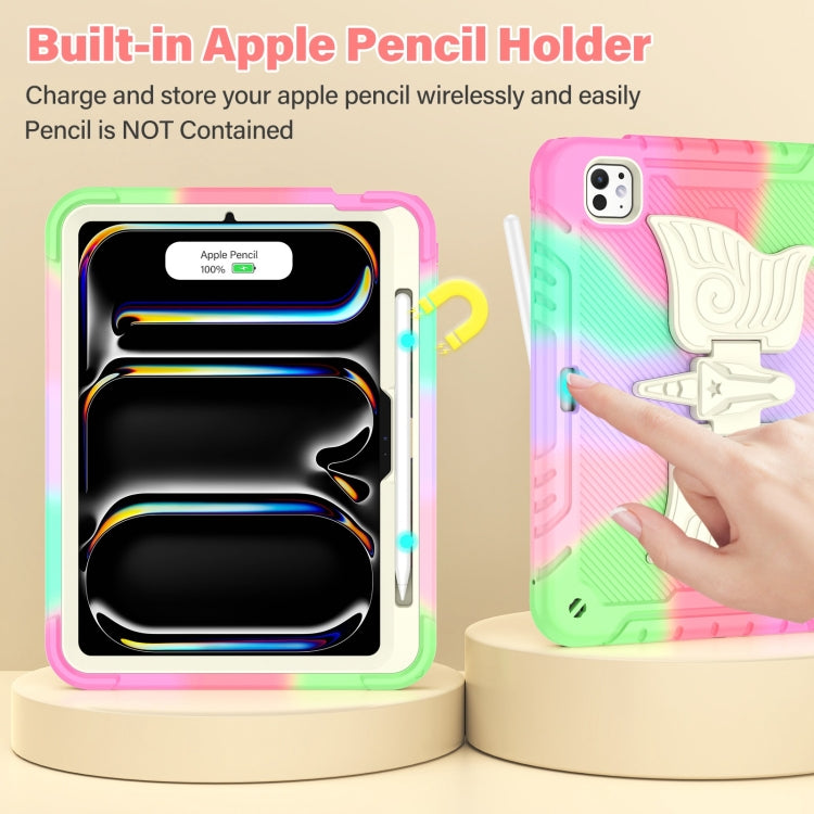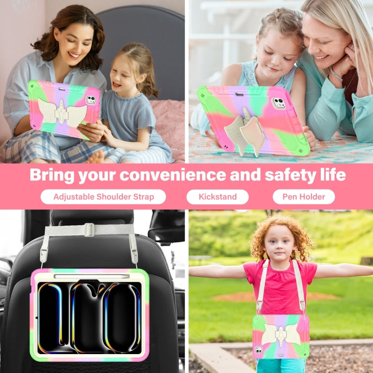 For iPad Pro 11 2024 Kickstand PC Hybrid Silicone Tablet Case with Strap(Colorful Rose Red)