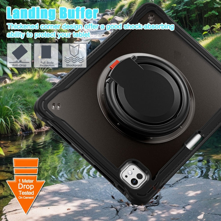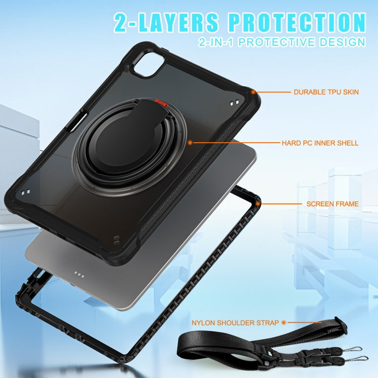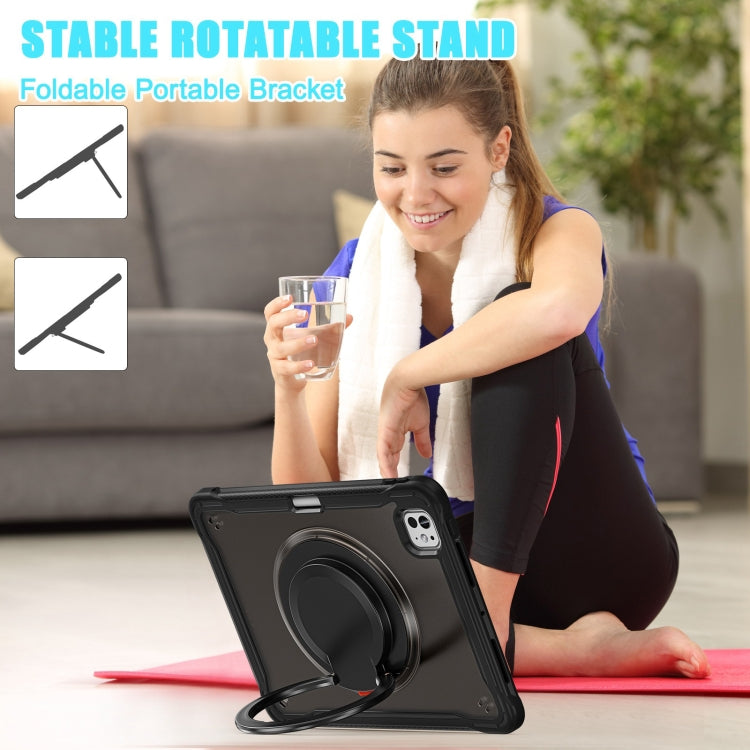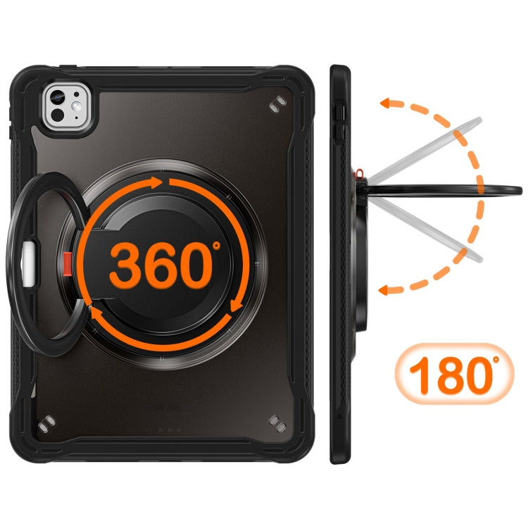 For iPad Pro 11 2024 Powerful Sailor Ring Holder Heavy Duty Hybrid Tablet Case with Strap(Black)