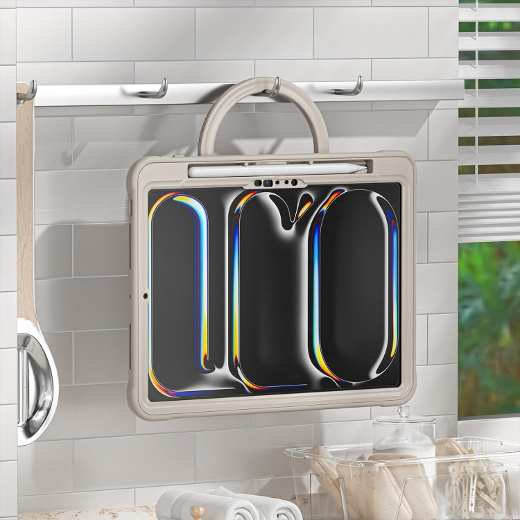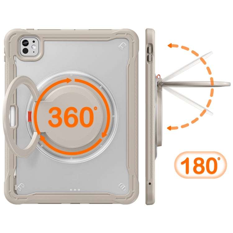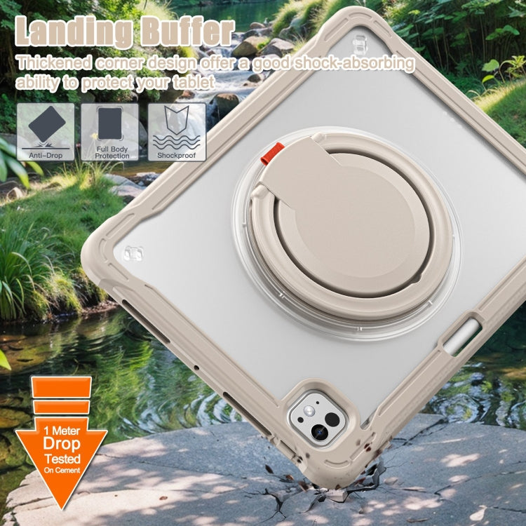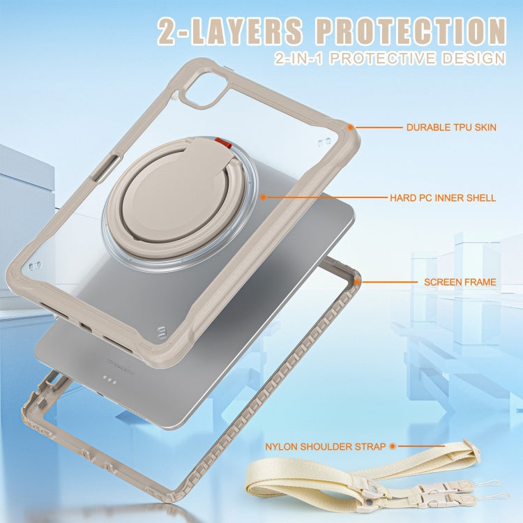 For iPad Pro 11 2024 Powerful Sailor Ring Holder Heavy Duty Hybrid Tablet Case with Strap(Khaki)