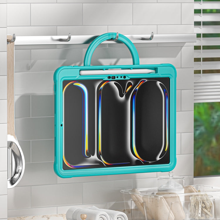For iPad Pro 11 2024 Powerful Sailor Ring Holder Heavy Duty Hybrid Tablet Case with Strap(Light Blue)