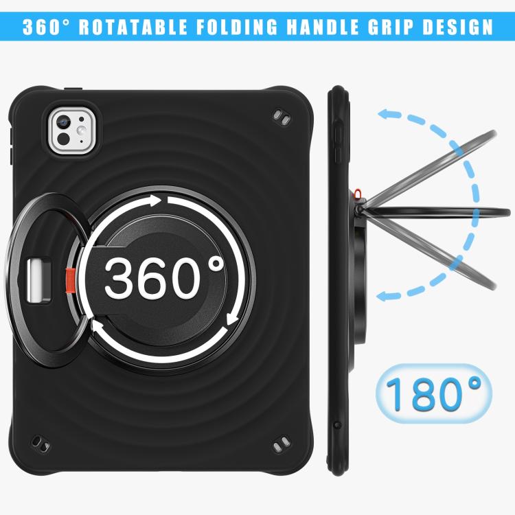 For iPad Pro 11 2024 Rotation Handle Holder Silicone Hybrid PC Tablet Case(Black)