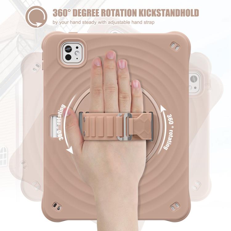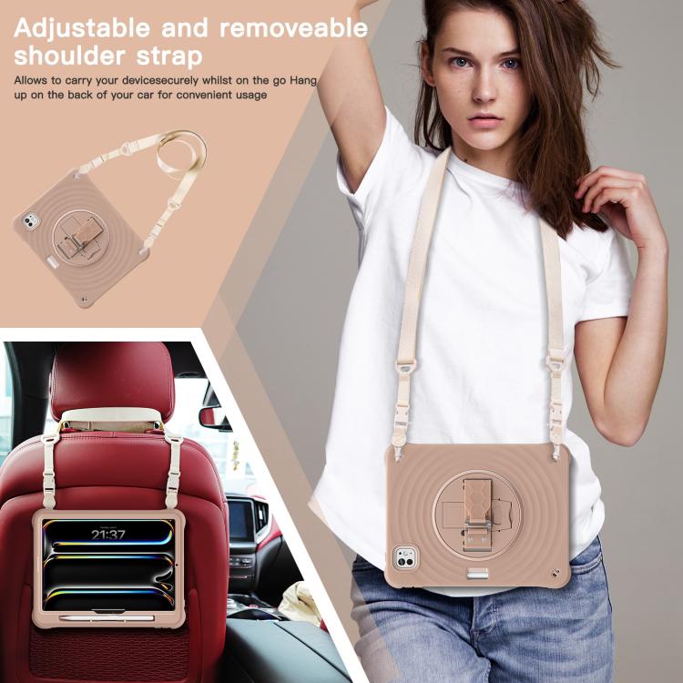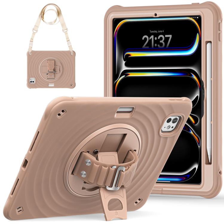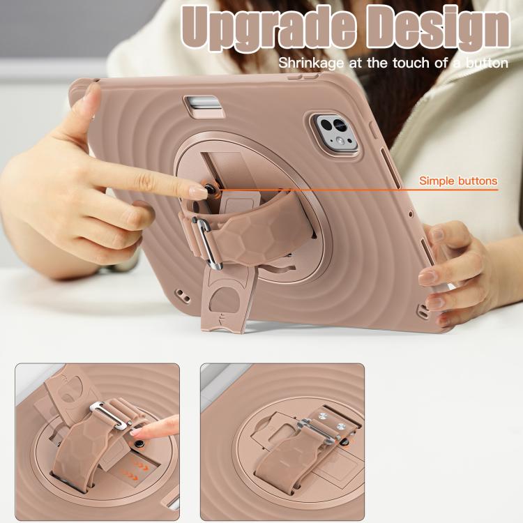 For iPad Pro 11 2024 Rotation Holder Silicone Hybrid PC Tablet Case(Light Coffee)