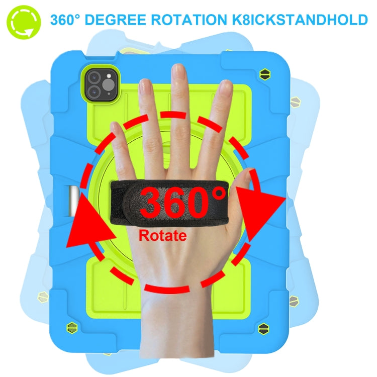 For iPad Pro 11 2024 Silicone Hybrid PC Shockproof Tablet Case with Shoulder Strap(Bluish-Green)
