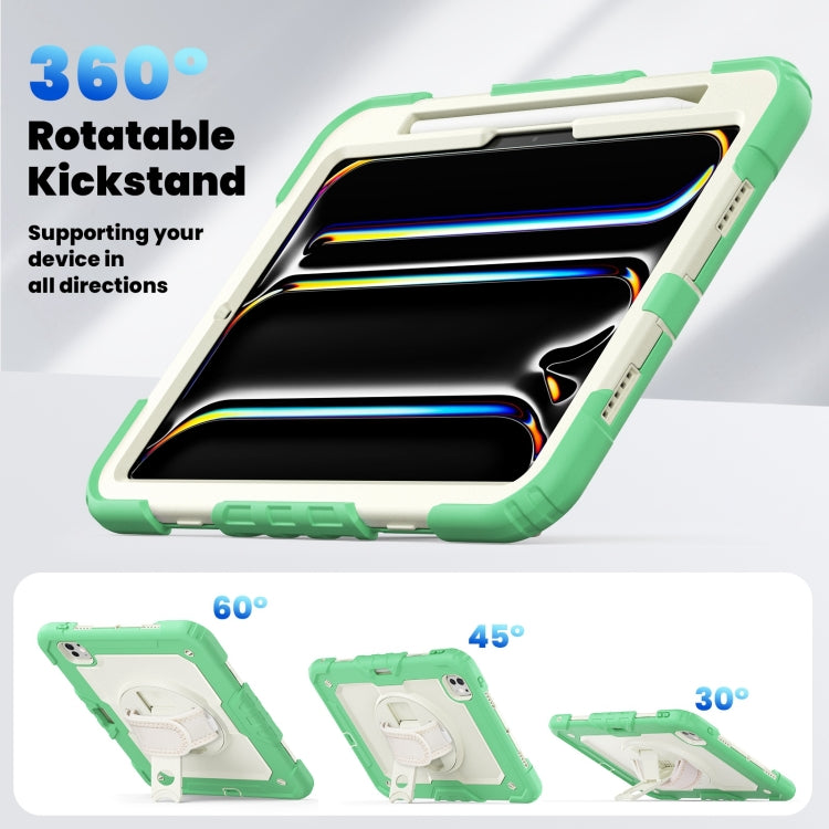 For iPad Pro 11 2024 Silicone Hybrid PC Tablet Case with Shoulder Strap(Beige + Light Green)