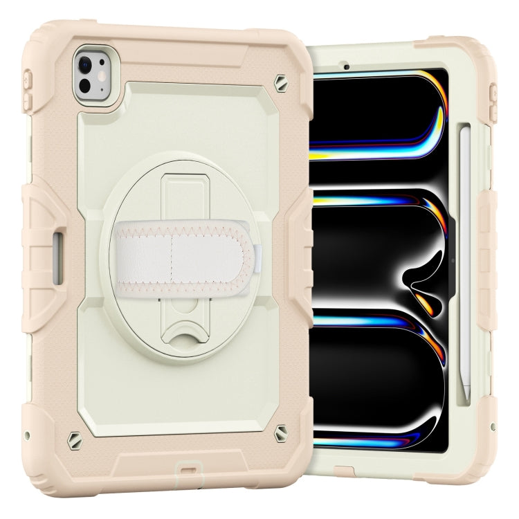 For iPad Pro 11 2024 Silicone Hybrid PC Tablet Case with Shoulder Strap(Beige + Rose Gold)
