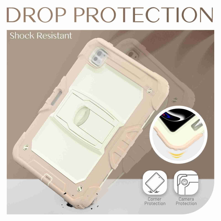 For iPad Pro 11 2024 Silicone Hydric PC Tablet Case with Shoulder Strap & Holder(Beige Rose Gold)