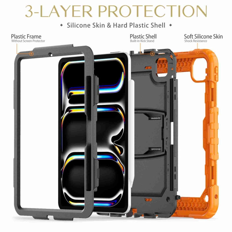 For iPad Pro 11 2024 Silicone Hydric PC Tablet Case with Shoulder Strap & Holder(Orange)