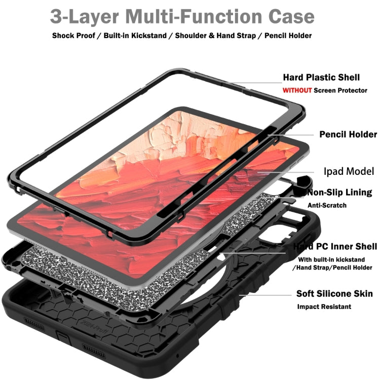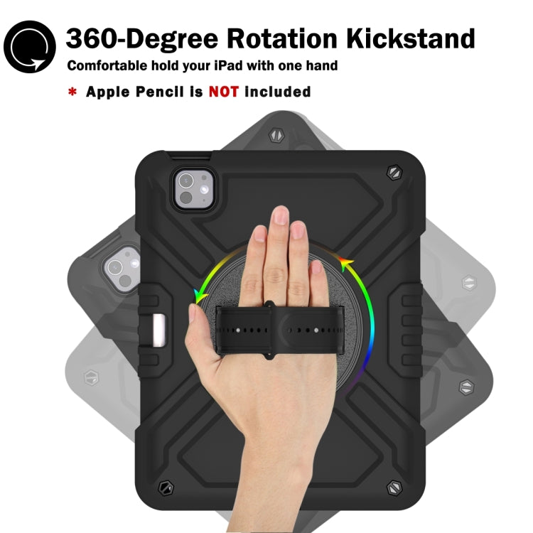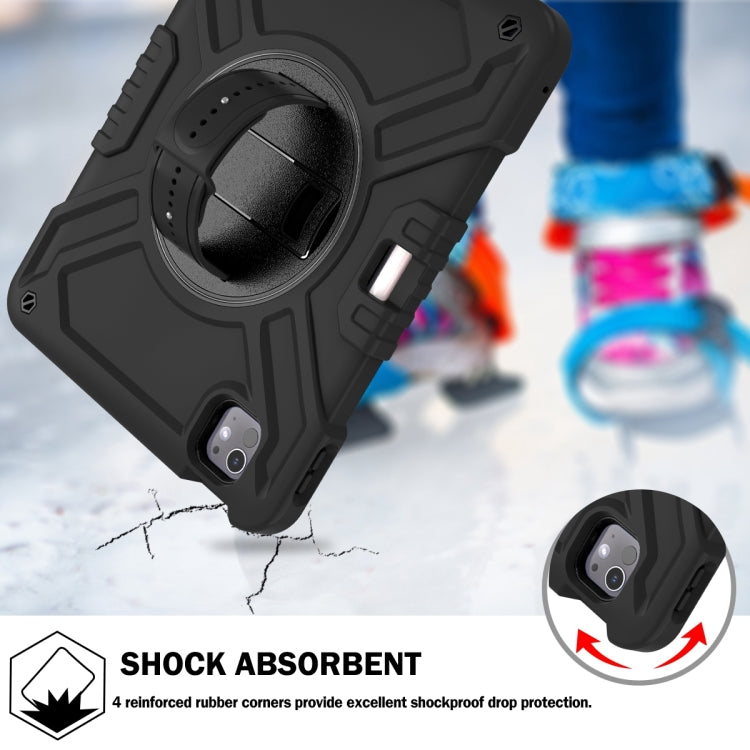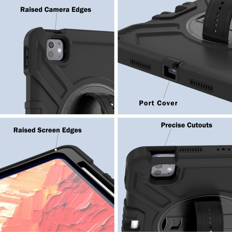 For iPad Pro 11 2024 X Rotation PC Hybrid Silicone Tablet Case with Strap(Full Black)