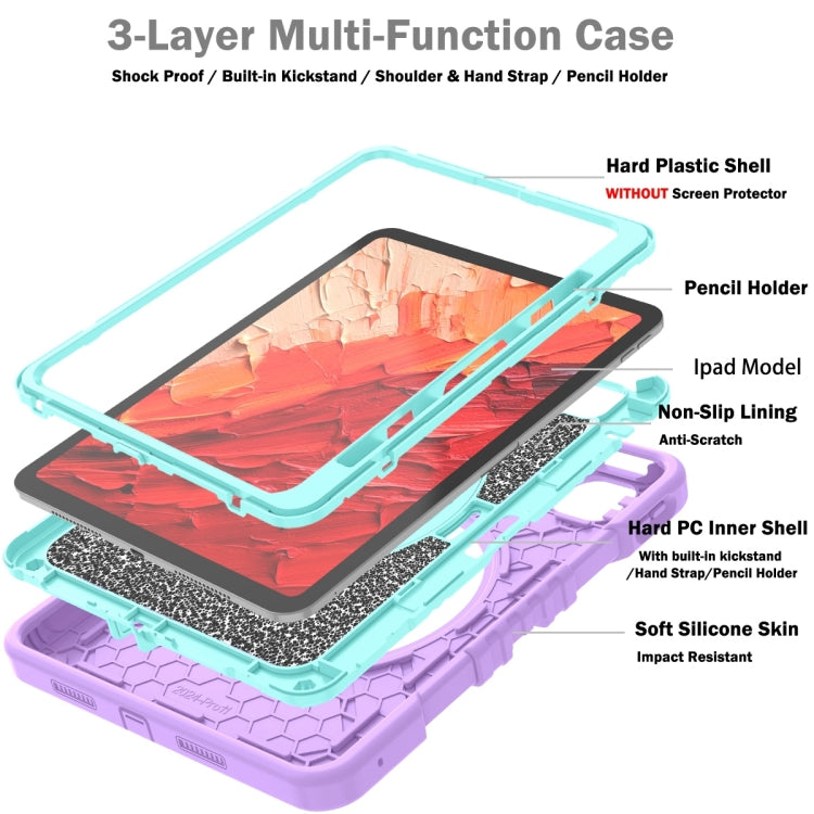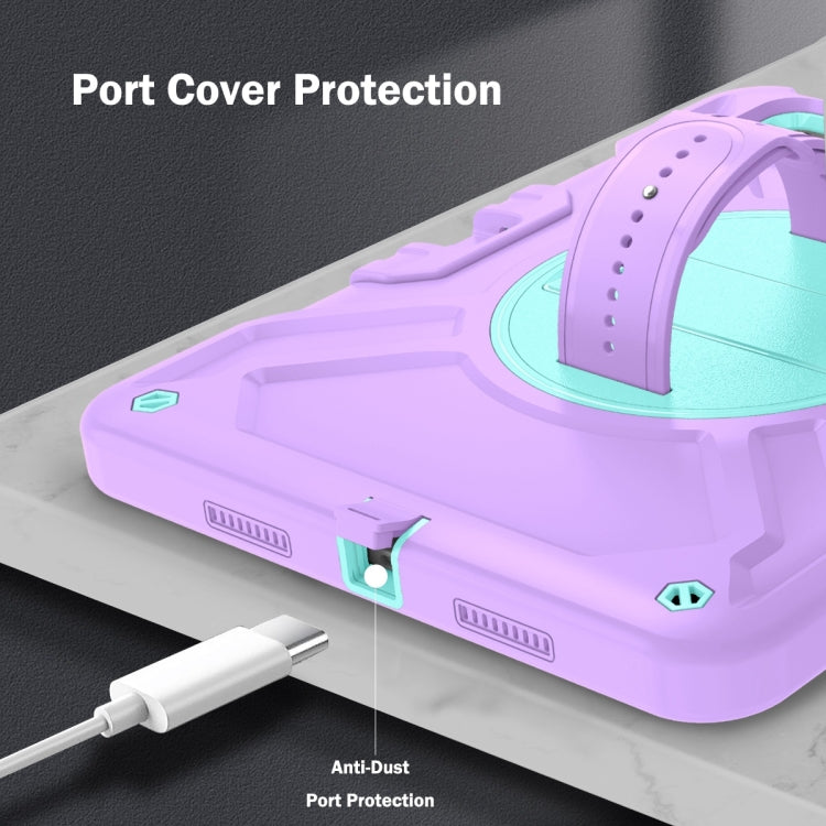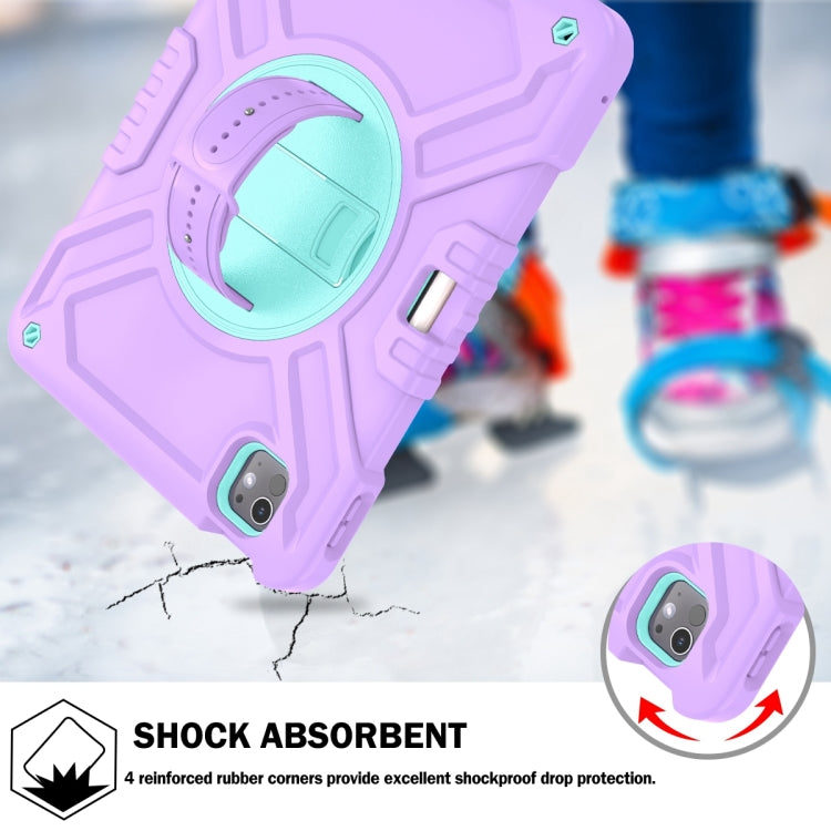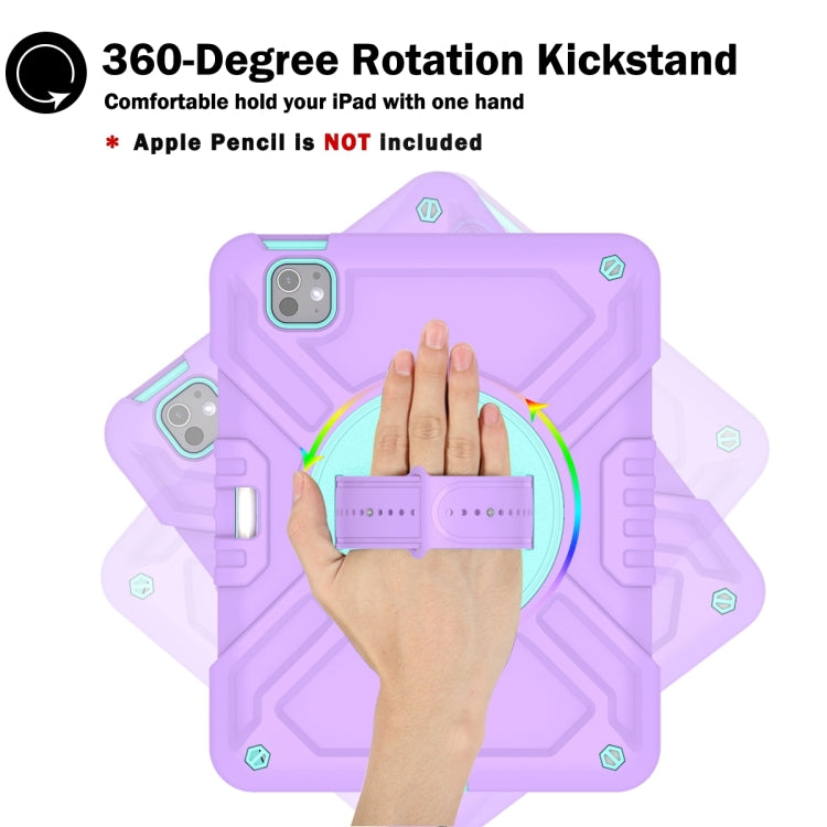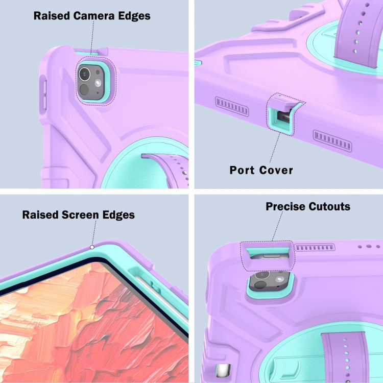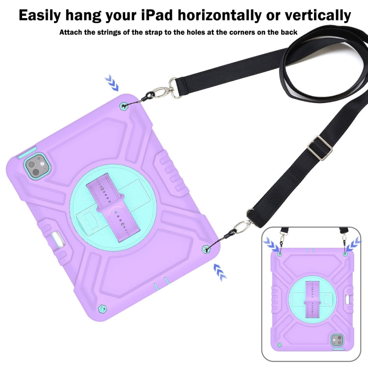 For iPad Pro 11 2024 X Rotation PC Hybrid Silicone Tablet Case with Strap(Purple Cyan)