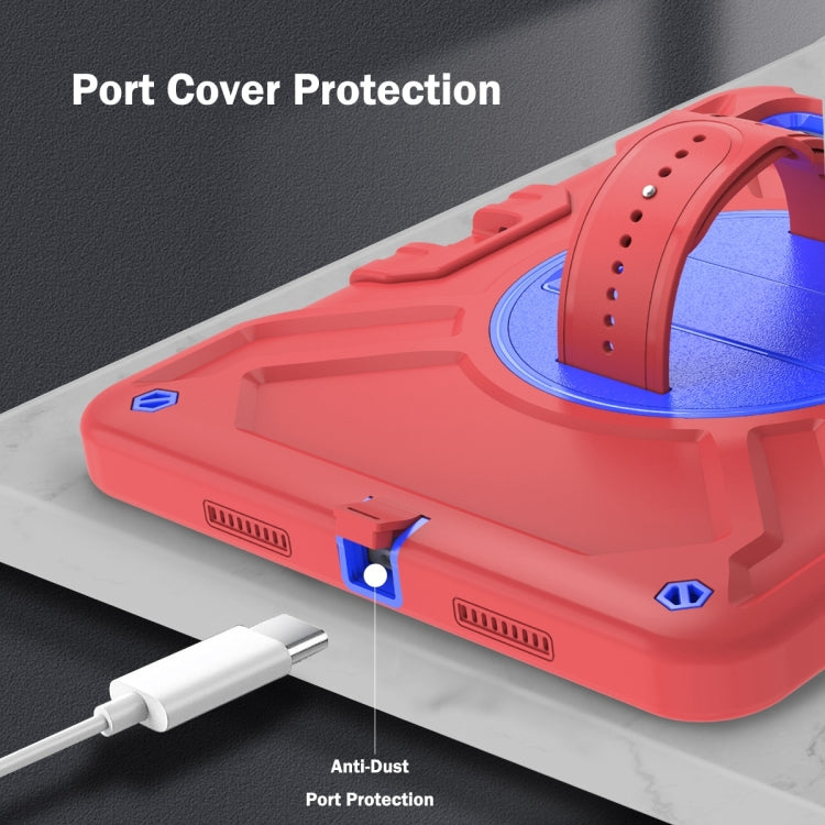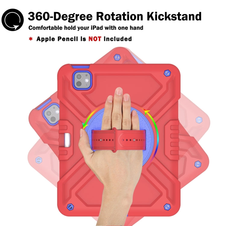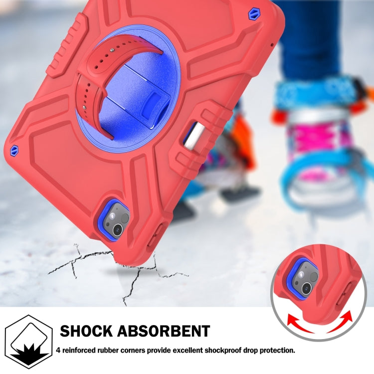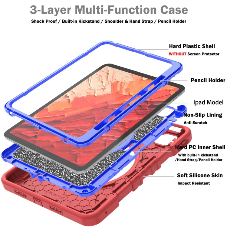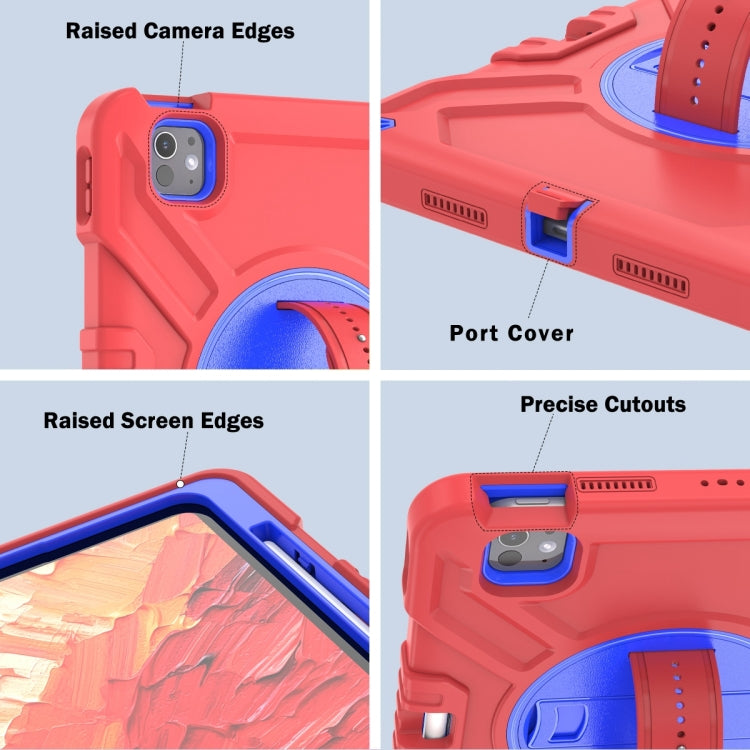 For iPad Pro 11 2024 X Rotation PC Hybrid Silicone Tablet Case with Strap(Red Blue)