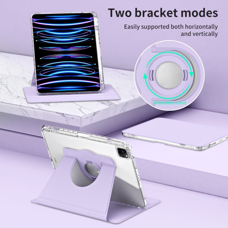 For iPad Pro 13 2024 360 Rotation Detachable Clear Acrylic Leather Tablet Case(Light Purple)