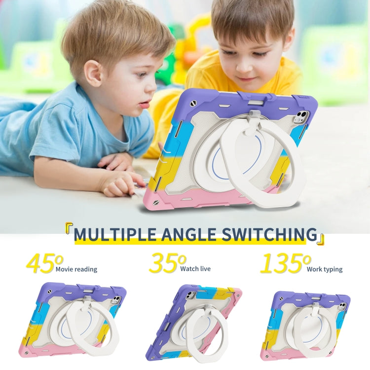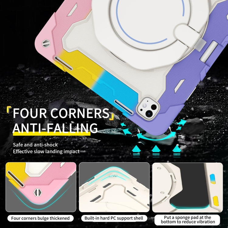 For iPad Pro 13 2024 Armor Portable Rotating Ring Holder Silicone Tablet Case with Pen Slot(Colorful Pink)