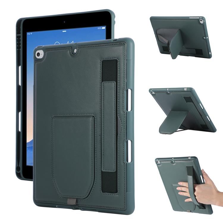 For iPad Pro 9.7 / 9.7 2018 / 2017 Hand Grip Holder Tablet Case with Pen Slot(Dark Night Green)
