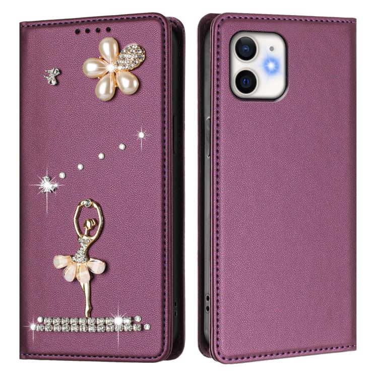 For iPhone 11 Ballet Girl Diamond Studded RFID Vegan Leather Phone Case(Violet)