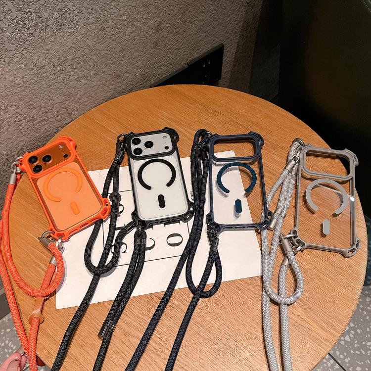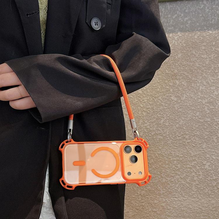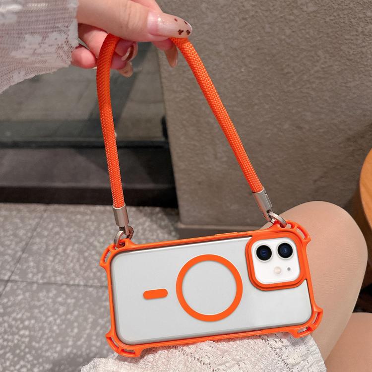 For iPhone 11 Drone-Style Four-Corner Shockproof Magnetic Acrylic Phone Case with Long and Short Lanyard(Orange)