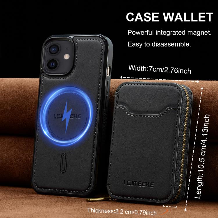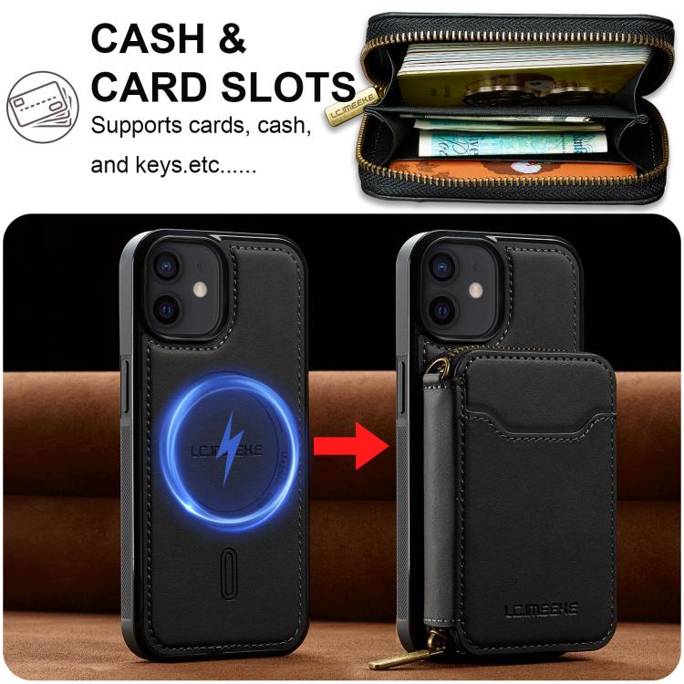 For iPhone 11 LC.IMEEKE L6 Series Zipper Card Bag MagSafe Magnetic Phone Case(Black)