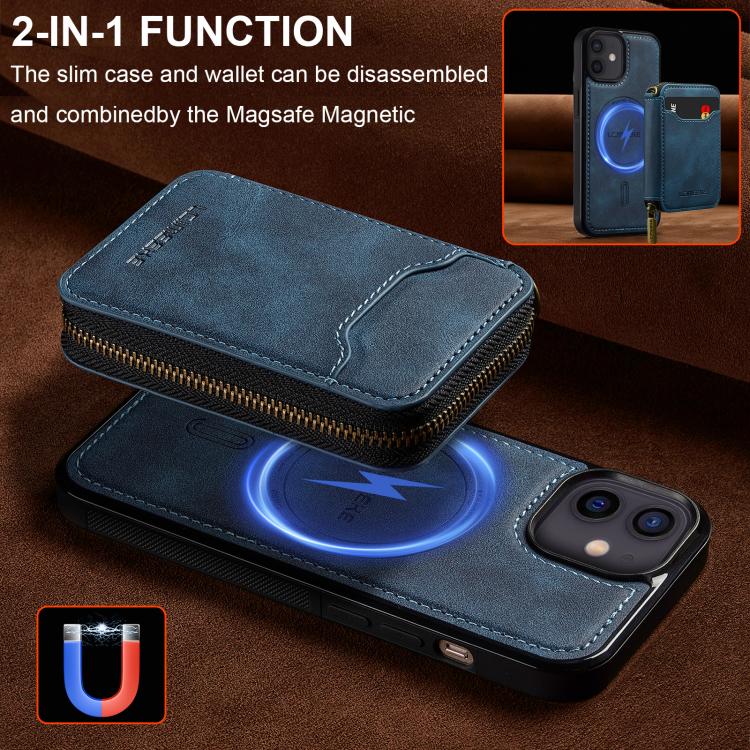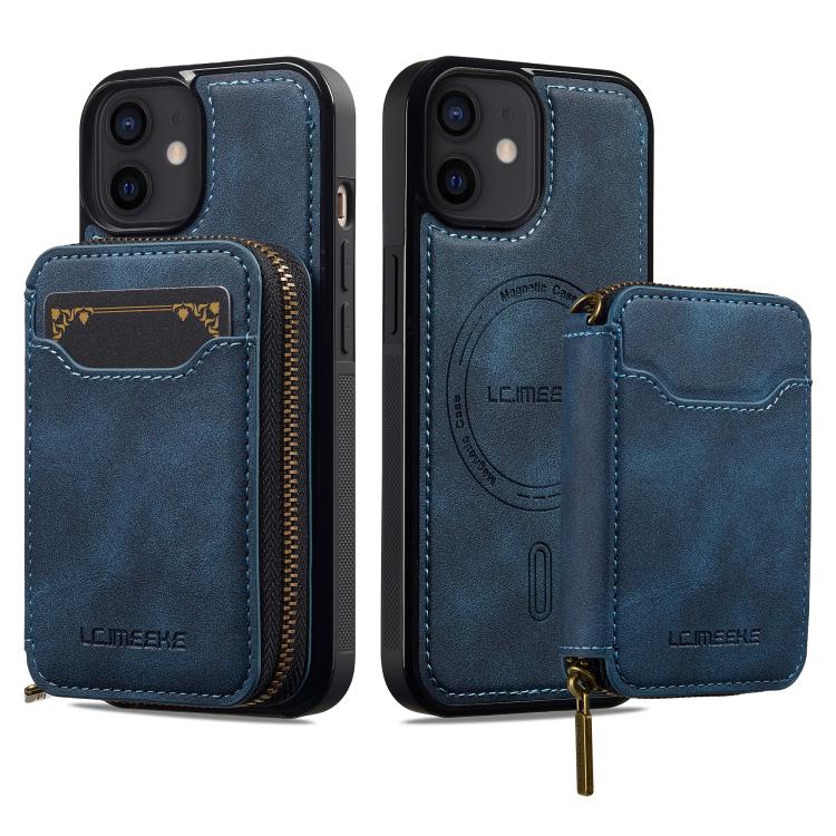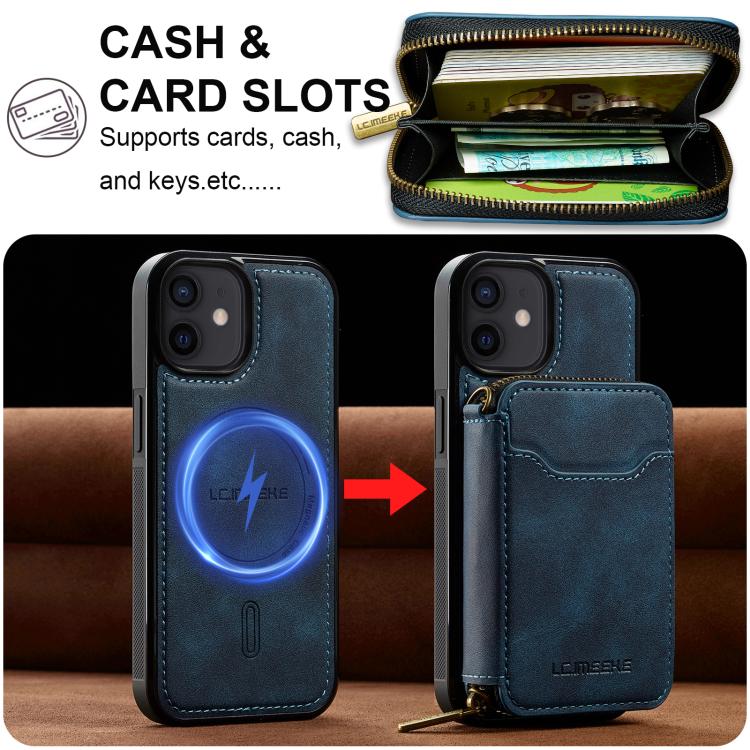 For iPhone 11 LC.IMEEKE L6 Series Zipper Card Bag MagSafe Magnetic Phone Case(Blue)