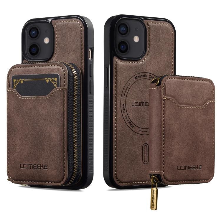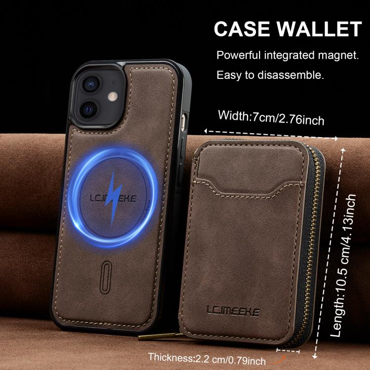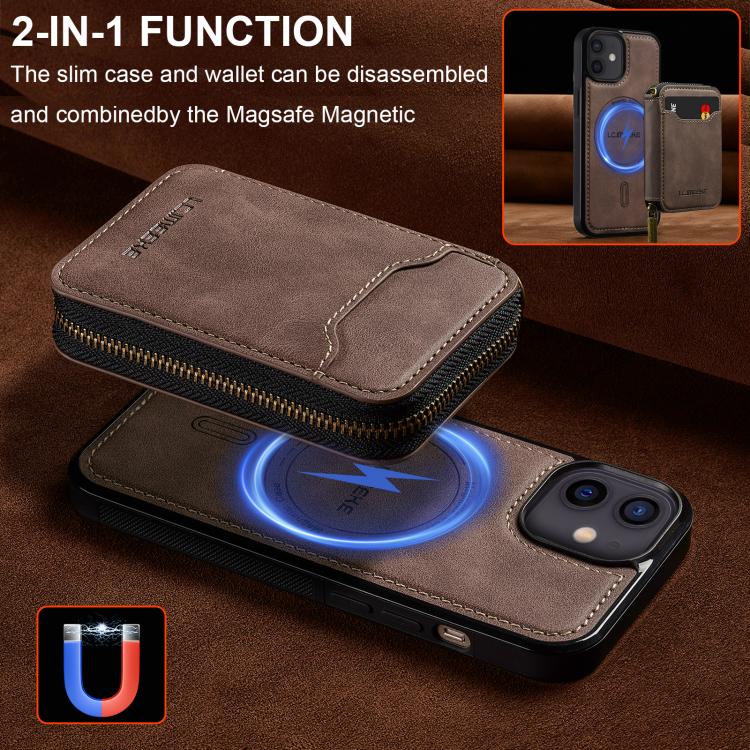 For iPhone 11 LC.IMEEKE L6 Series Zipper Card Bag MagSafe Magnetic Phone Case(Coffee)