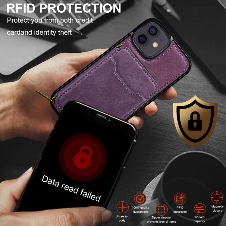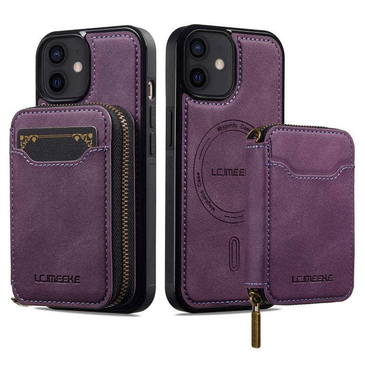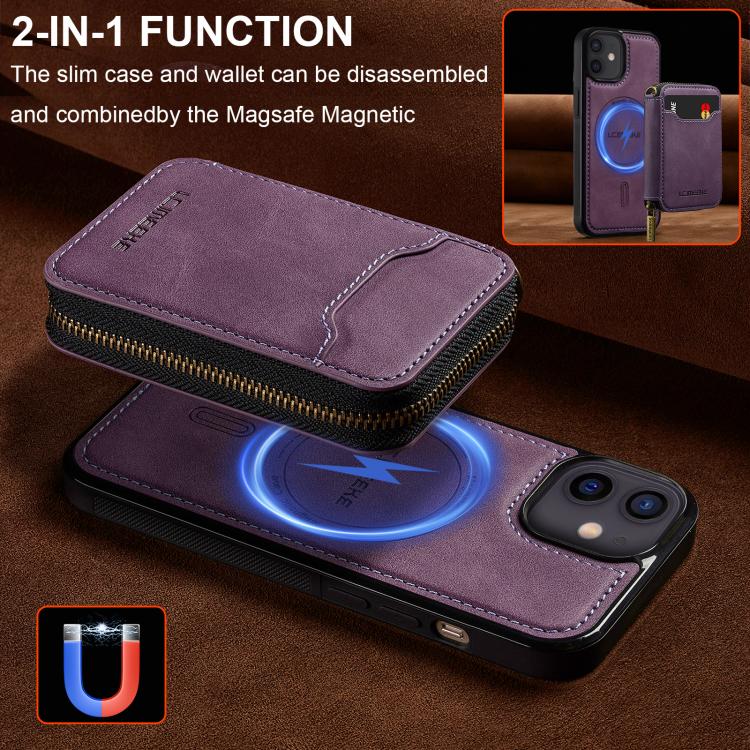 For iPhone 11 LC.IMEEKE L6 Series Zipper Card Bag MagSafe Magnetic Phone Case(Purple)