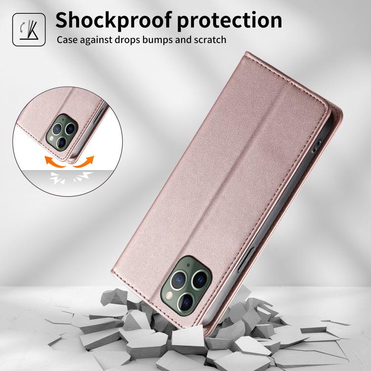 For iPhone 11 Pro Stitched Line Magnetic RFID Vegan Leather Phone Case(Pink)