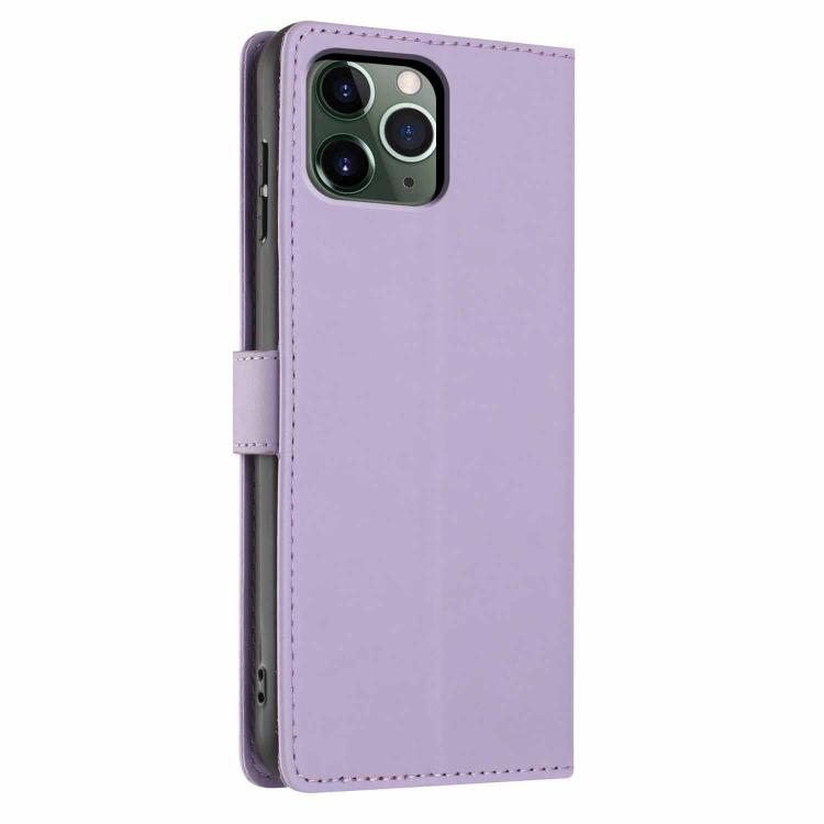 For iPhone 11 Pro Tree Cat Embossed Flip Vegan Leather Phone Case(Purple)